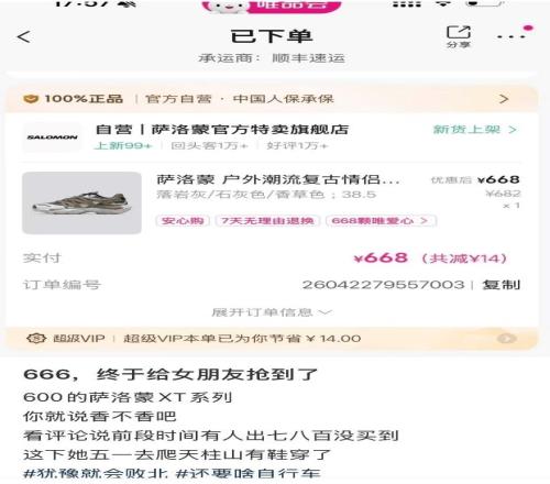 直到他看到了今年大学才毕业的侄子,在小红书上晒出折扣平台买的一双萨洛蒙XT系列。