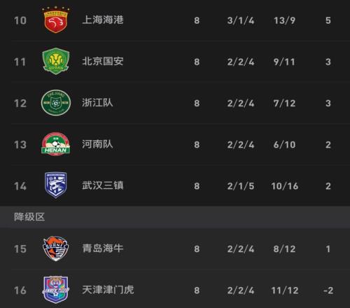 海牛更是凭借4-1大胜泰山的关键3分,成功在本轮过后积分转正。而津门虎在本轮客场4-2力挫国安后,已经有望在下轮摆脱负分的困境。