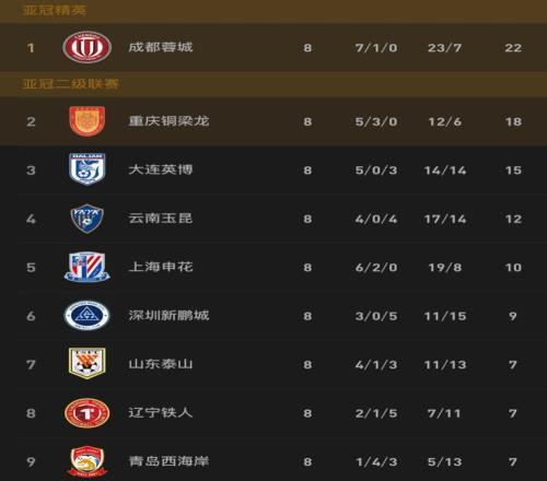 本轮比赛,蓉城在主场4-0完胜浙江,豪取5连胜。而铜梁龙则在主场被西海岸1-1逼平,尽管依然保持不败,但4连胜终结的他们,却因此被蓉城拉开了4分的差距。